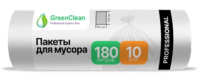 Мешки для мусора серии PROFESSIONAL 180 литров, в рулоне 10 штук, ПВД, 30 мкм, размер 85*110 см, прозрачные Professional, GreenClean